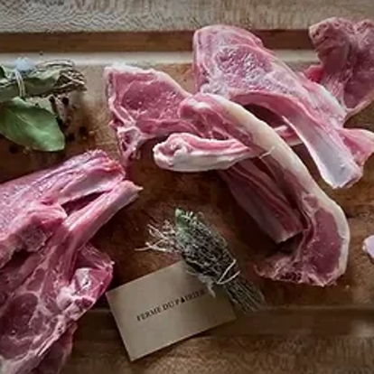 Colis de viande d'agneau entier ou demi, contenant gigot, épaule, sauté et cotelette.